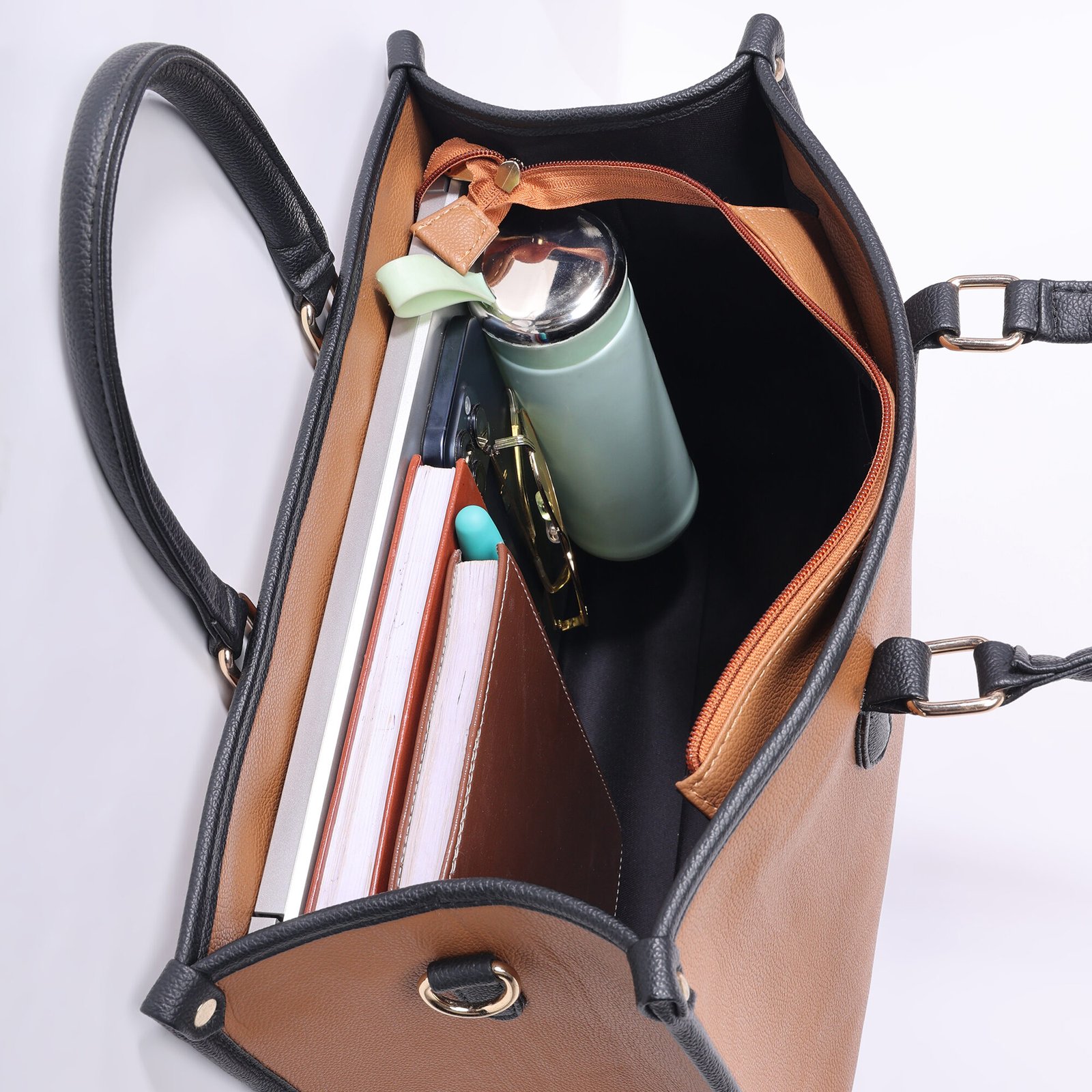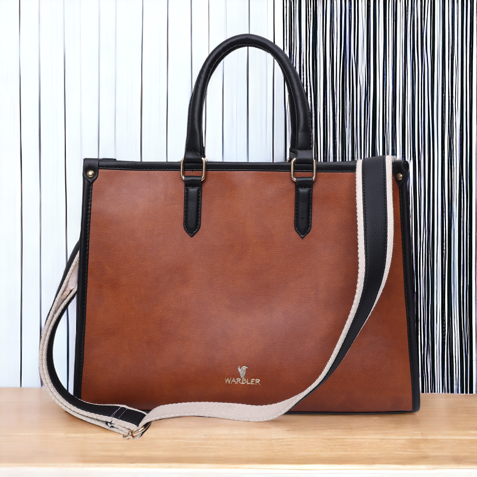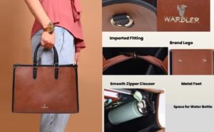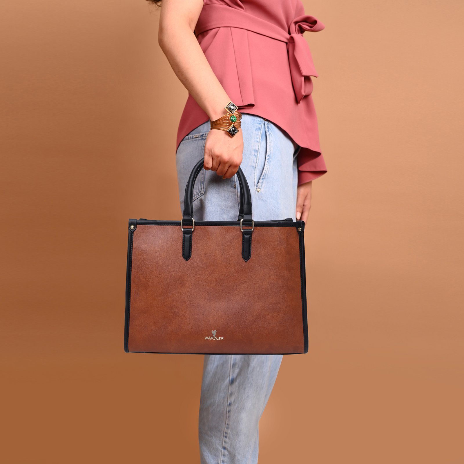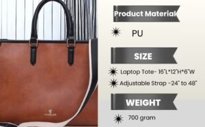 Warbler Womens Tote Bag PU Laptop Bag 15 inch Work Shoulder Bags Casual Briefcase Handbag for Travel, Office, College (Tan)