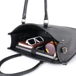 - * Fashionable Yet Functional: This laptop tote bag for women combines elegance and practicality. Expertly crafted with sophisticated canvas and PU fabric, it is not only stylish but also durable. The reinforced base and side padding provide extra protection while maintaining the bag’s shape and preventing spills. Protective studs on the base guard against dirt and wear, ensuring the bag stays in pristine condition.